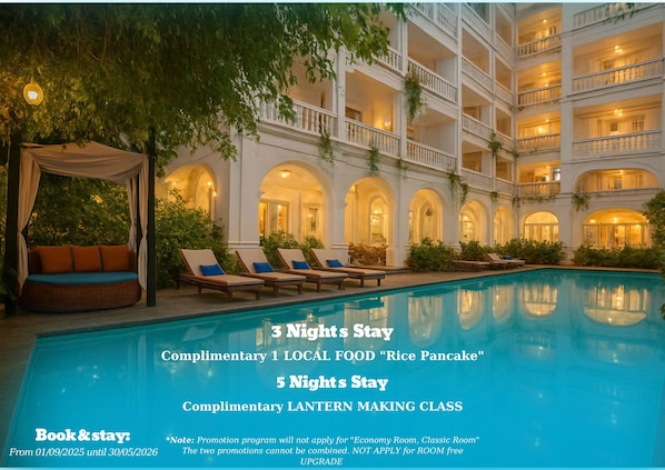 La piscina exterior, la piscina de la azotea y la piscina para niños proporcionan retiros acuáticos para todos. Las tumbonas y el bar junto a la piscina aumentan la relajación.