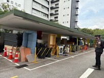There is piles of furniture and all sorts of stuff sitting out the front in the car parking bays looking like a junk yard.